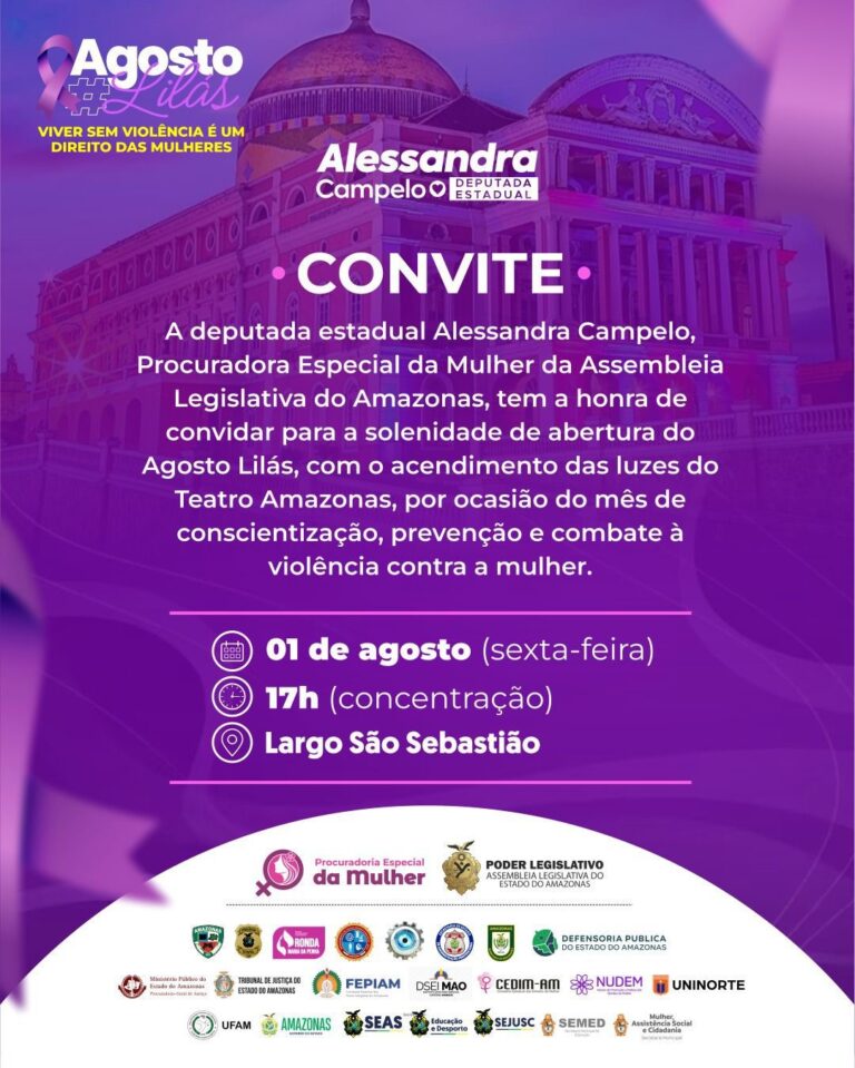 Acendimento das luzes do Teatro Amazonas marca início do Agosto Lilás no estado nesta sexta-feira (01/08) 1 de agosto de 2025