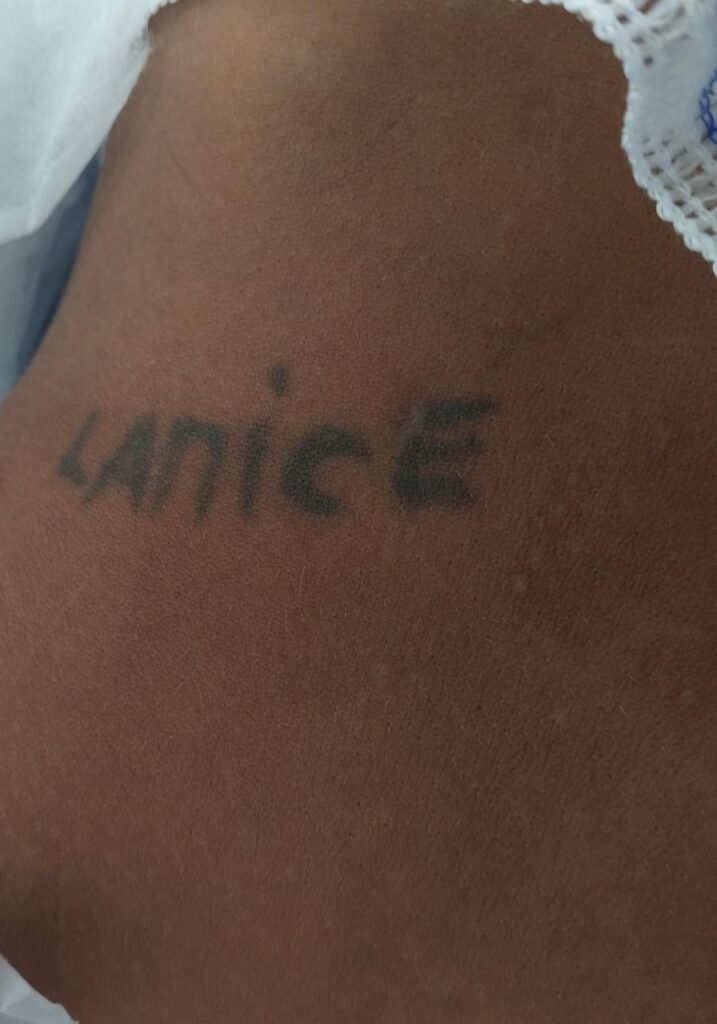 De acordo com o serviço social da unidade, a paciente não possui documentos de identificação, mas se apresentou como Maria Clarice. Ela também tem uma tatuagem no braço com o nome Lanice.