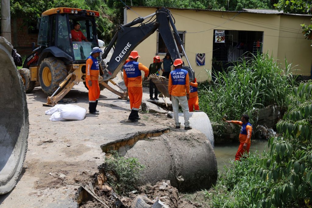A Prefeitura de Manaus, por meio da Secretaria Municipal de Infraestrutura (Seminf), realiza, nesta quarta-feira, 12/11, a implantação de novos tubos no igarapé da rua Açapuva, no bairro Monte das Oliveiras, zona Norte da capital, após as laterais terem sofrido um desbarrancamento com os tubos rompidos.